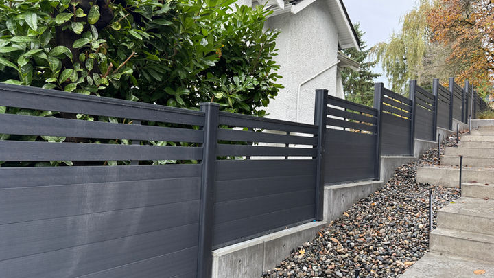 NeoLine fencing was recently installed in a brand-new luxury residence on West 10th Avenue, Vancouver. The deep graphite tone was carefully selected to match the home’s exterior siding, creating a seamless and cohesive visual flow across the entire property.